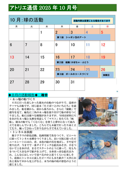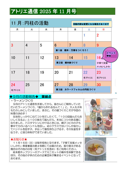●金沢プレイルーム・アトリエ通信2025年10月号/11月号(※11月末まで掲載)